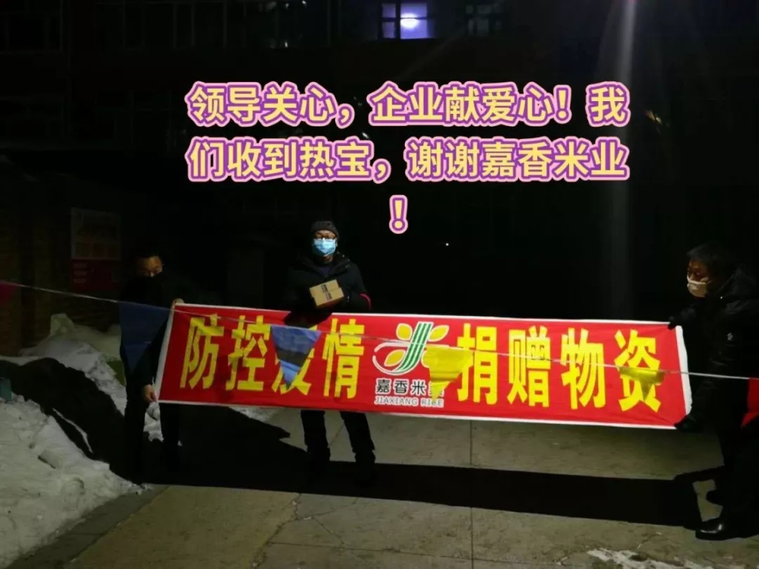 綏化市嘉香米業(yè)有限責(zé)任公司為支持奮斗在一線的疫情防控工作者早日打贏這場戰(zhàn)役,積極動員各合作伙伴、關(guān)系單位和全體嘉香人,發(fā)揚中華民族優(yōu)秀美德,踴躍奉獻愛心。為綏化北林區(qū)法院、綏化市公安交警大隊北林大隊、綏化市北林區(qū)人民檢察院、綏化市北辰街道辦事處、綏化市農(nóng)業(yè)農(nóng)村局、綏化市第三中學(xué)、綏化市雷鋒小學(xué)等機關(guān)干部小區(qū)值守人員捐贈電熱暖寶近500個。